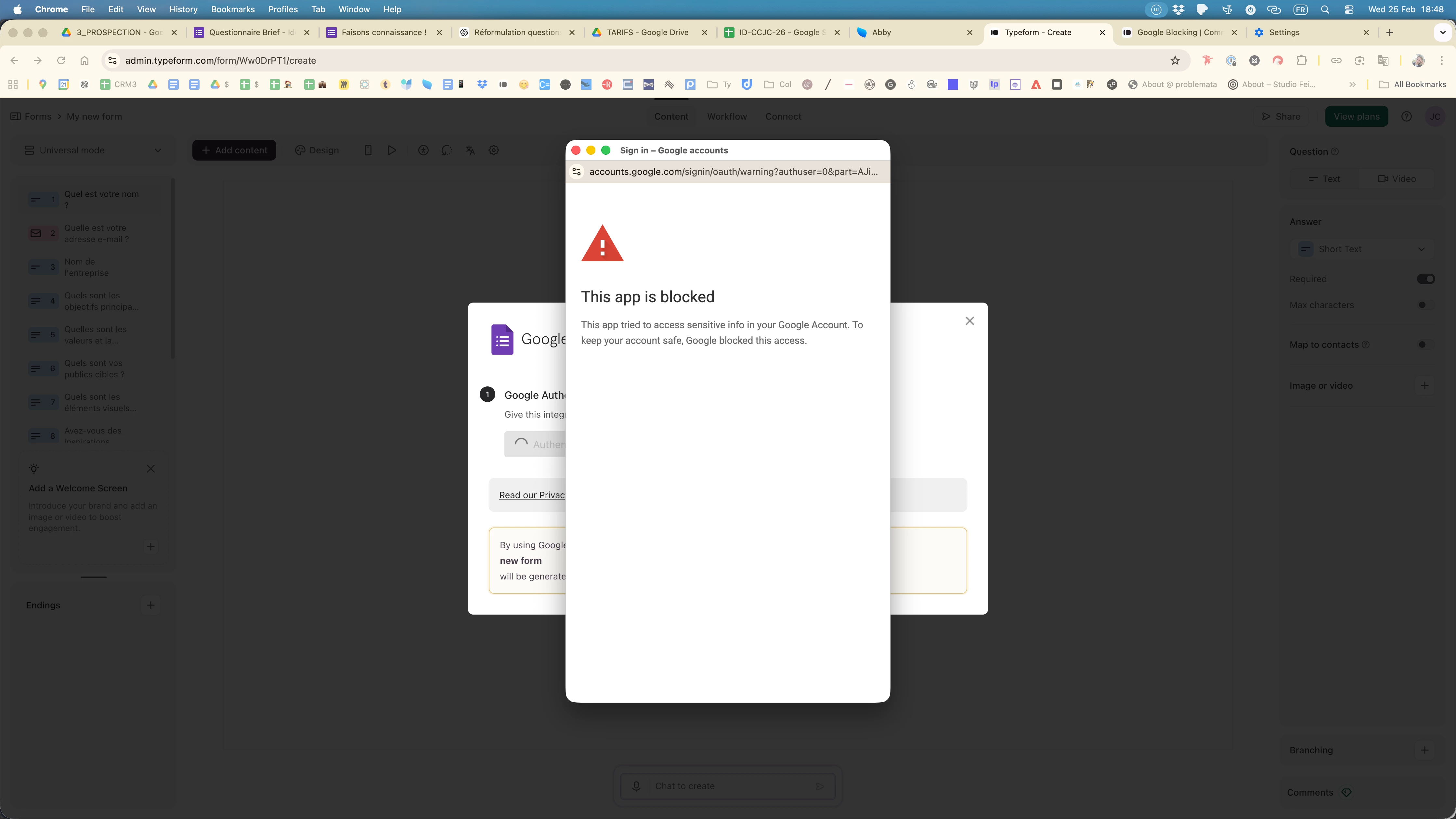 when i try to connect google to imprt a form