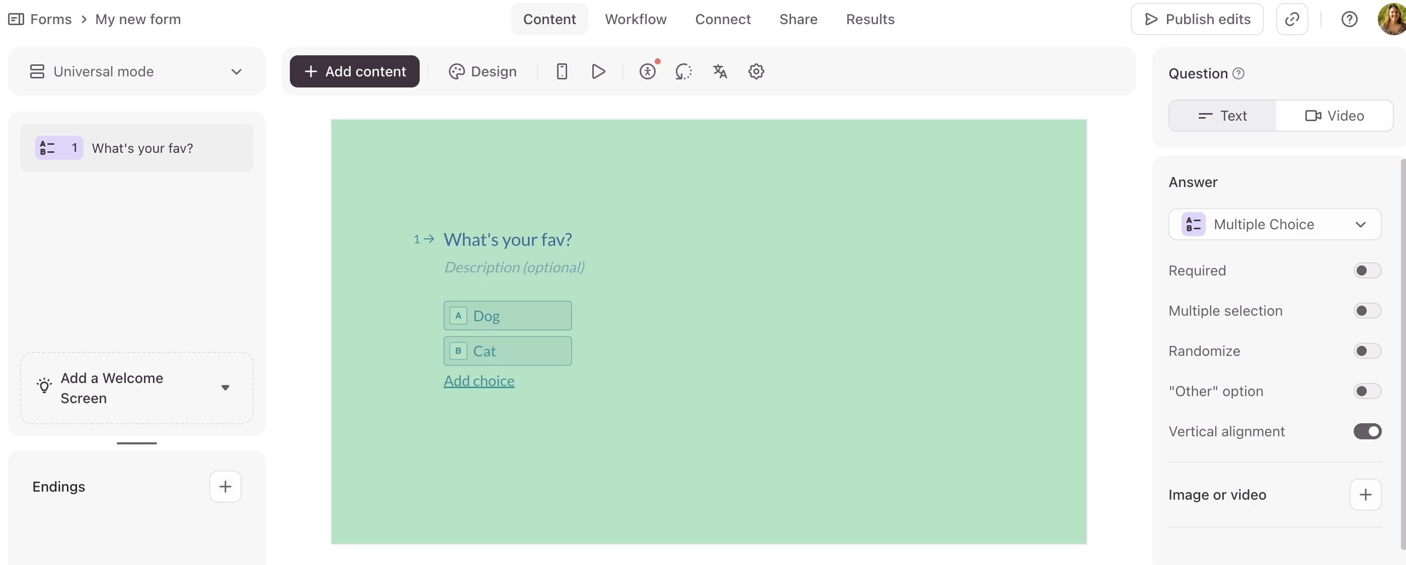 I want to create a simple, one-question poll like this: What’s your fave? Options: a( Dogs b) Cats