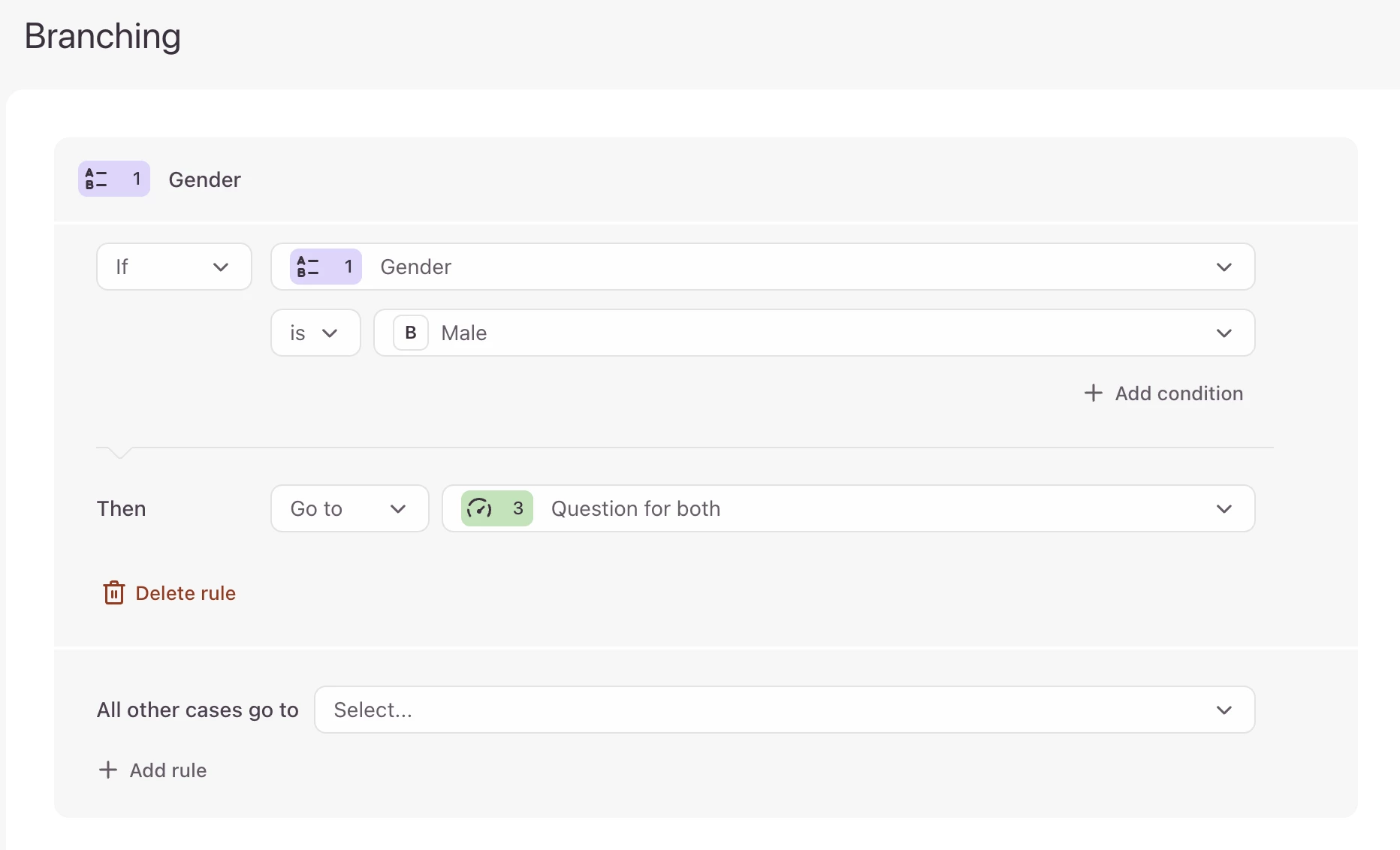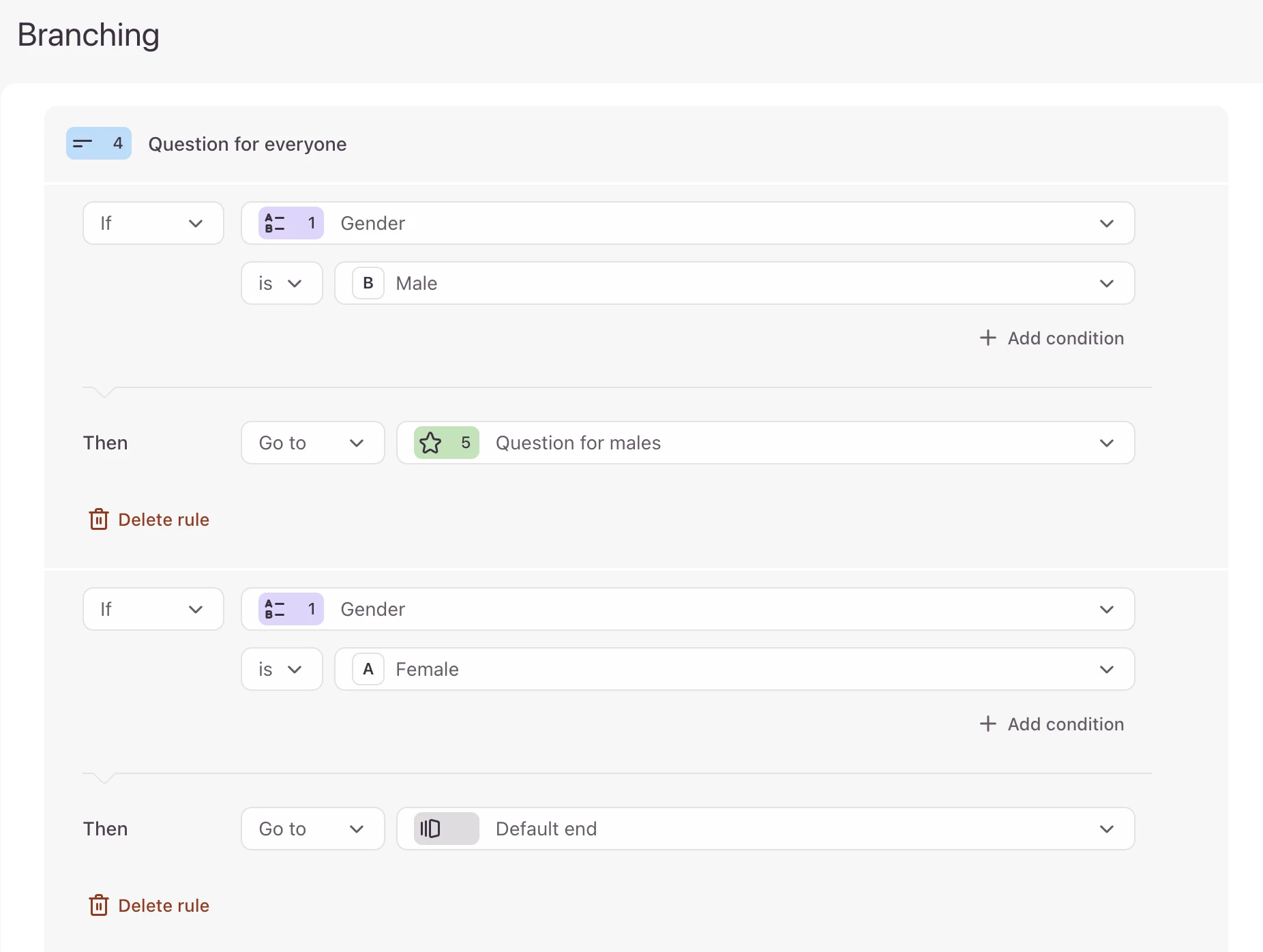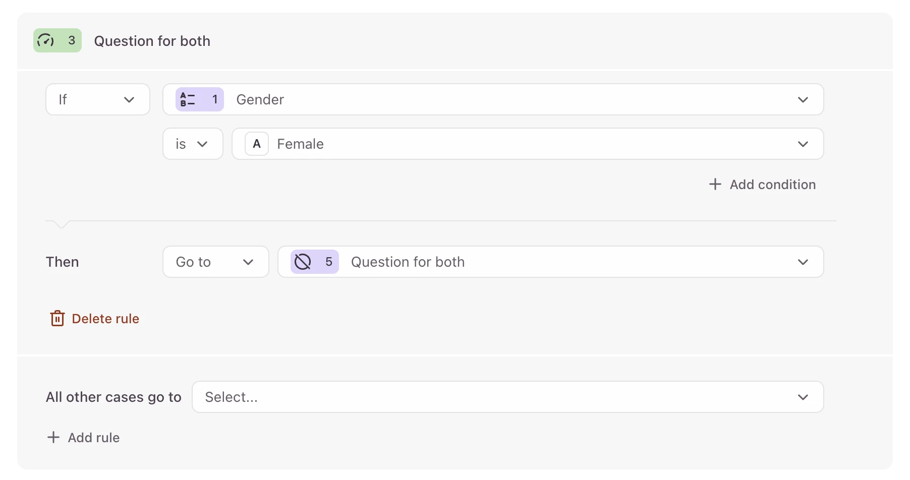 Yes, you can do it without skipping over other questions. I created the logic with the example questions you’ve provided. You would just need to create logic rules on the question before the question for males only, in your example, logic would need to be created on question 4.