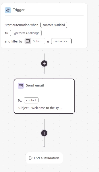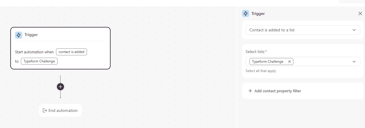 - I have not tested this out but I think I can see a way to use a Typeform-based order form that submits a record into my Results that would update a contact property of course-name purchased, which in turn would trigger an automation that would remove a contact from a list and end the email automation. That’s sounding do-able but an ugly workaround.