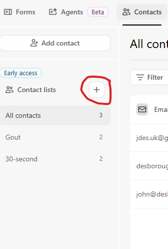 In my list of contacts, I want to know if someone signs up to a topical newsletter via a form. If they sign up for that newsletter, I want an email sequence triggered as the automation. If the same user responds to a feedback survey, I want them to be added into another email sequence. So I need some way to push these folks into a ‘contact list’ based on the form details. At the same time, since I am allowed to have only one contact record (in All Contacts) per email address, I had to come up with another way to try and record which forms the user had completed.