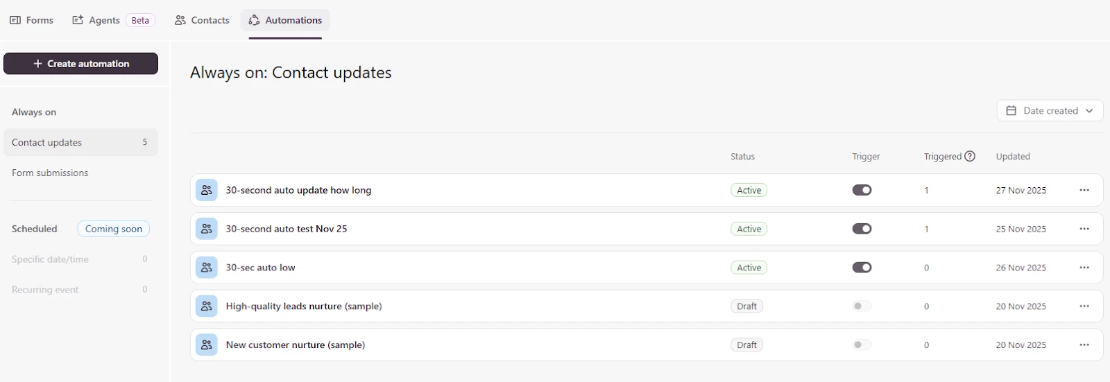 Now I can run separate automations for the addition of a new contact or updating a contact record and assigning them into different lists.
