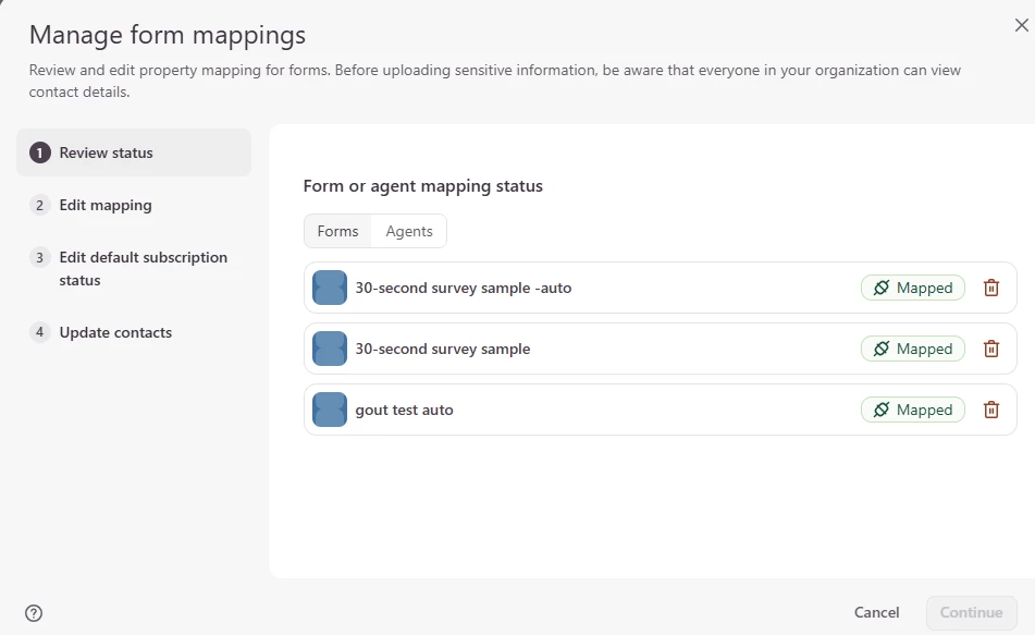 This is where you can set up a form mapping and ensure that you have all the necessary information from the form(s) set up.