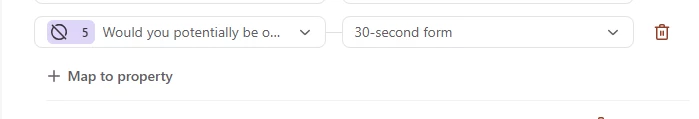 Here’s the mapping for that contact property ’30-second form’ – I based this on a question in the form that asks the user if they would be interested in hopping onto a short call to discuss their challenge. This is a trigger for me that someone has a sense of urgency to solve their problem and is a potential buyer.
