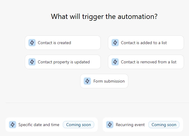 You’ll see the following screen, which allows you to select how your automation will be triggered.