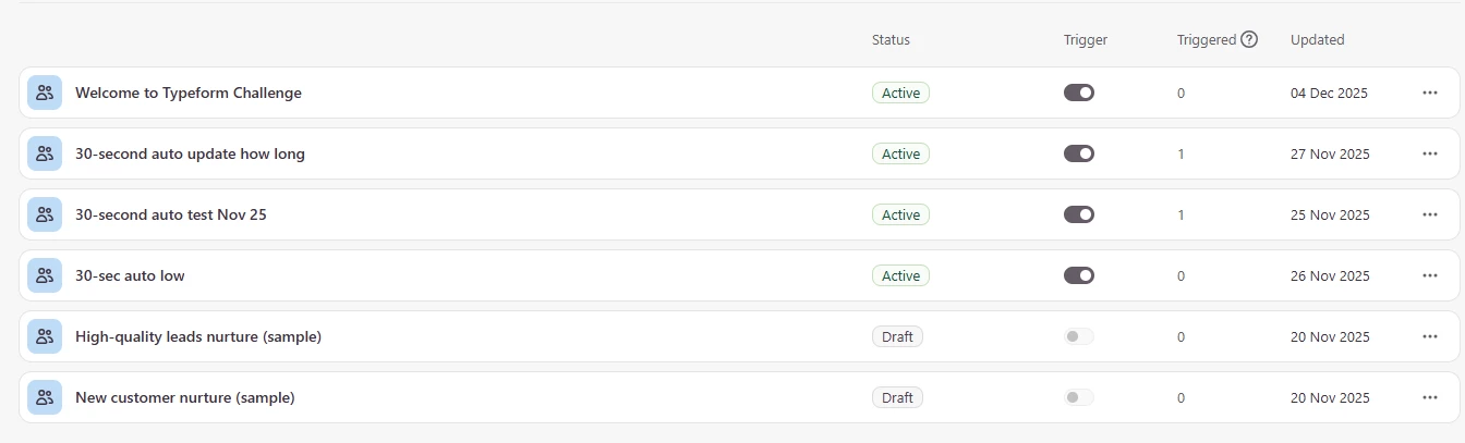 As I write this in early December 2025, I want to call out some of the things that I think are missing from the automations at this time, features that are available in some of the ESP platforms and CRM solutions. (Note: I have made suggestions to the Typeform Product team about these as well)