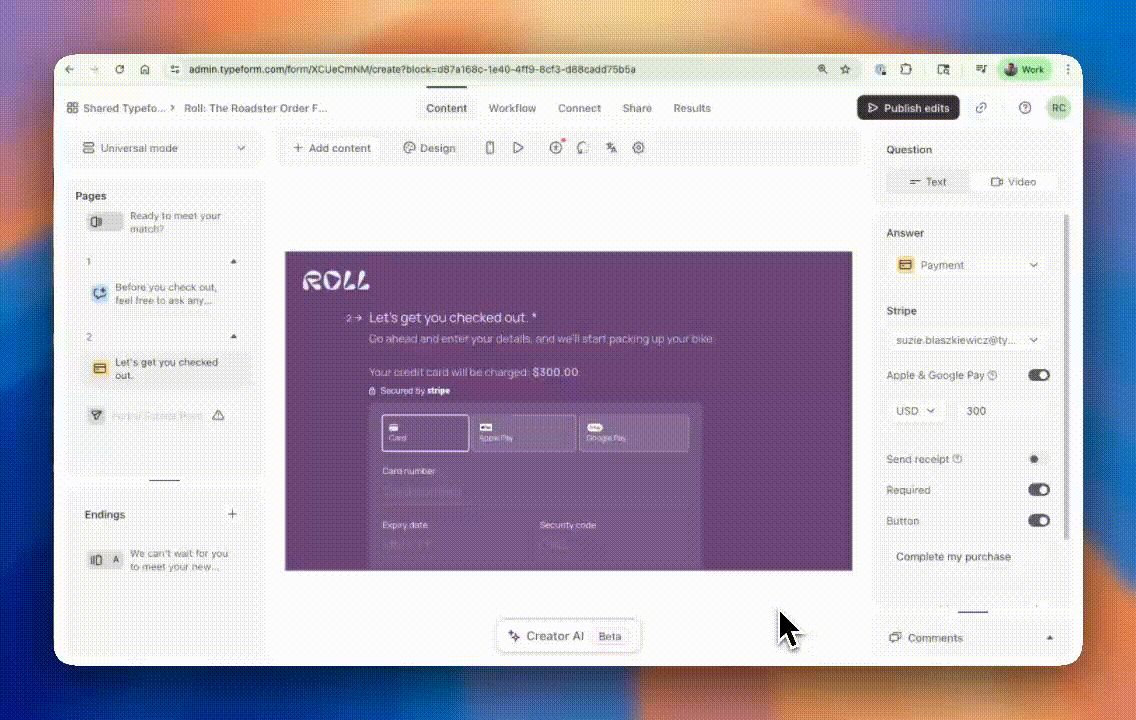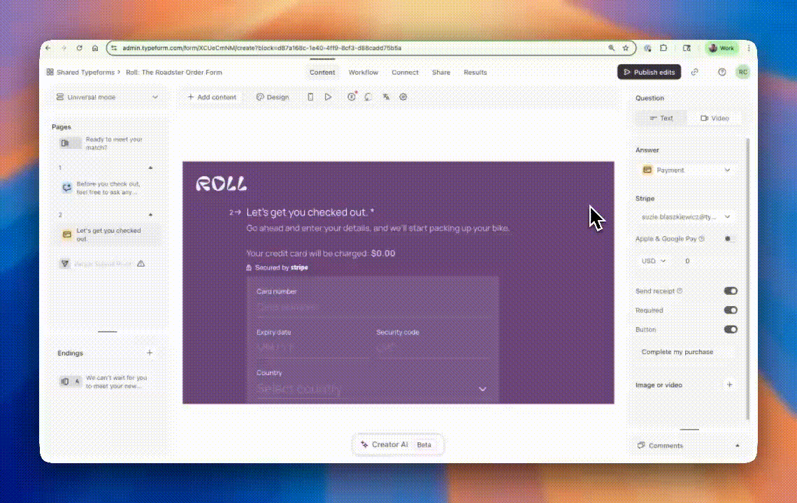 - Creators will also have the option to send payment receipt emails via Stripe, so respondents know that their payment has been processed successfully.
