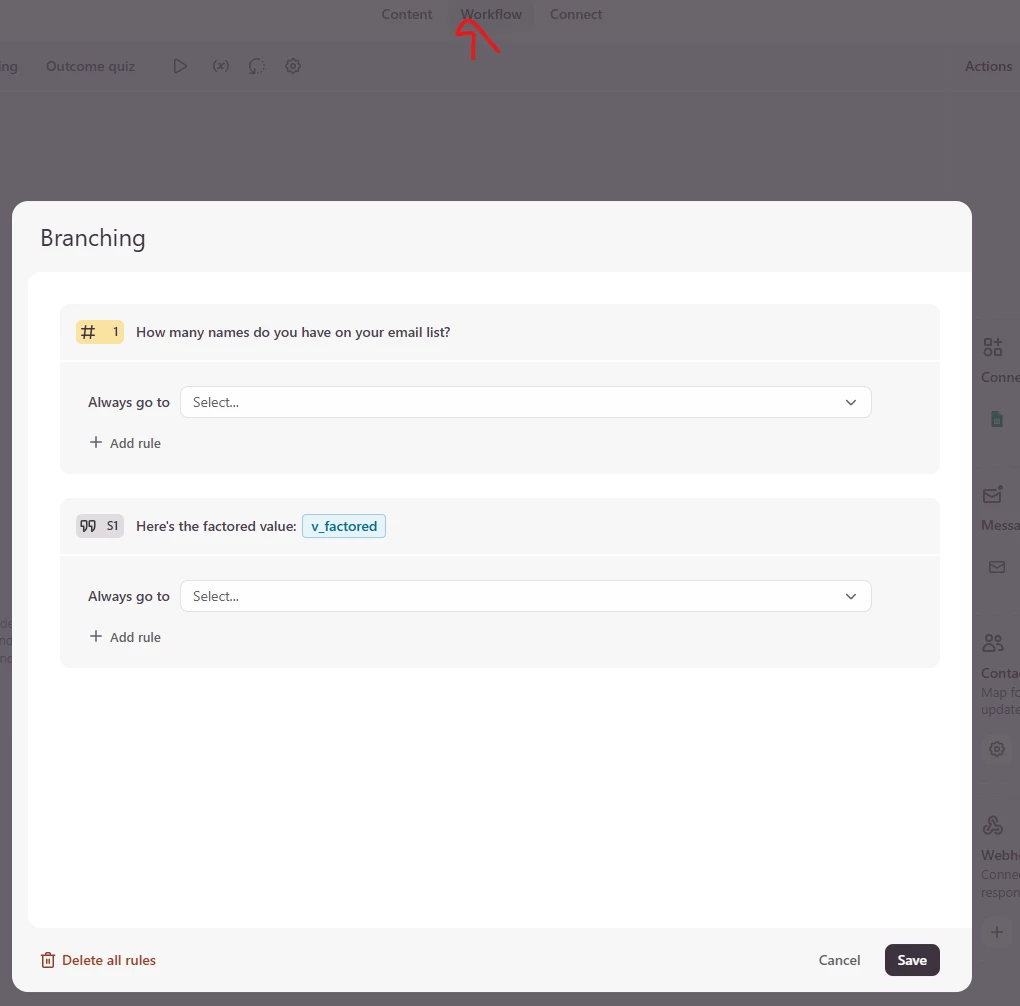 we’re going to add 3 rules the page - one to put the answer from q1 into the variable: